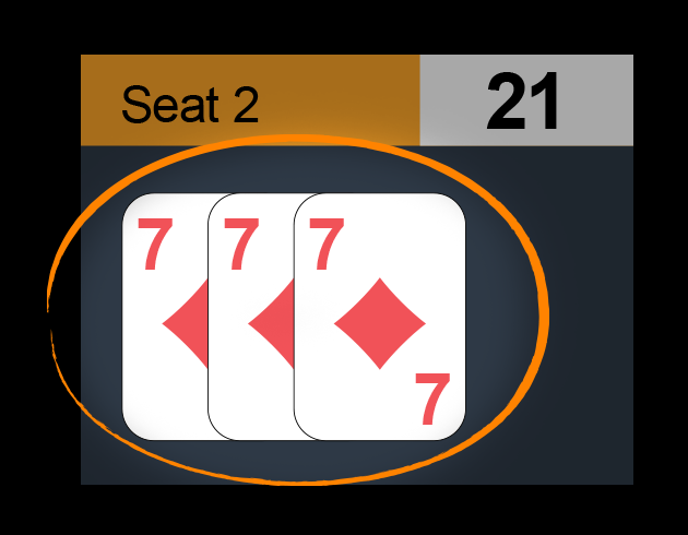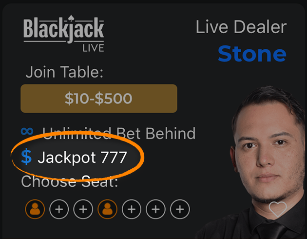 Players must play the $1 jackpot (J) side bet to qualify for the 7-7-7 jackpot. Promotional credit/chips do not qualify a player for the 7-7-7 jackpot. Only the first three cards of the player’s hand qualify. Split hands will not qualify. The prizes are: Grand Prize: three 7’s of diamonds wins the entire progressive jackpot; Mid Prize: any three red 7’s wins $1,000; Mini Prize: Any three 7’s wins $100. A player is only able to win one jackpot per hand. Players who get the three diamond 7-7-7’s will only win the progressive jackpot and not the mid or the mini prize. Players who win the mid prize will not qualify for the mini prize. Mid and Mini Prizes will be automatically credited to the player’s account. The grand Prize will only be credited to the player’s account after review and jackpot verification. Player qualifies to win 7-7-7 jackpot against the dealer’s push. Only the front player can play the $1 side bet – players betting behind do not qualify. Additional Terms & Conditions apply.
