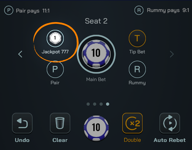 Click the Settings icon ⚙️, select the ‘Auto bet on Jackpot 777‘ tab, and $1 will automatically be debited and applied to the Jackpot when you place a valid main bet.